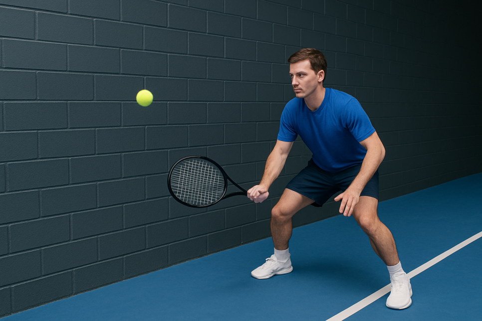 공을 벽에 던지는 순간에 스플릿 스텝 실행