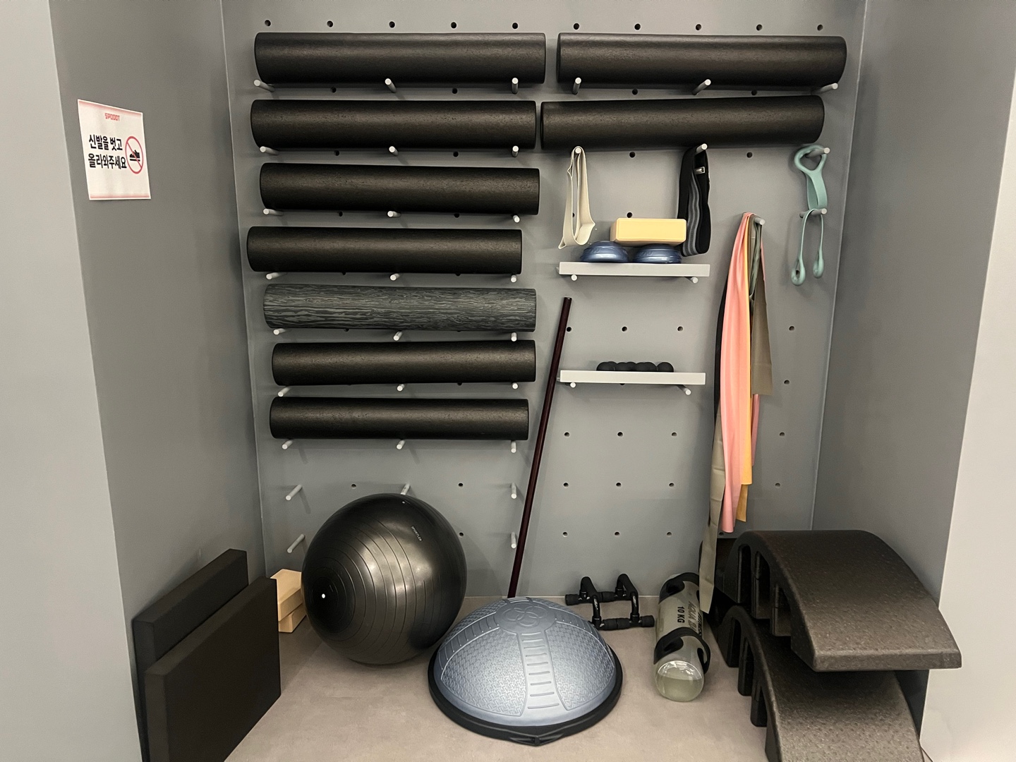 💡 헬스장 내부에 별도로 마련된 스트레칭 존에서 충분히 스트레칭을 진행할 수 있어요.
