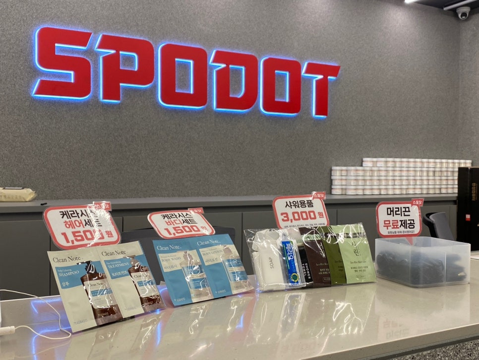 데스크에서 사워용품을 구매하실 수 있습니다.🛁