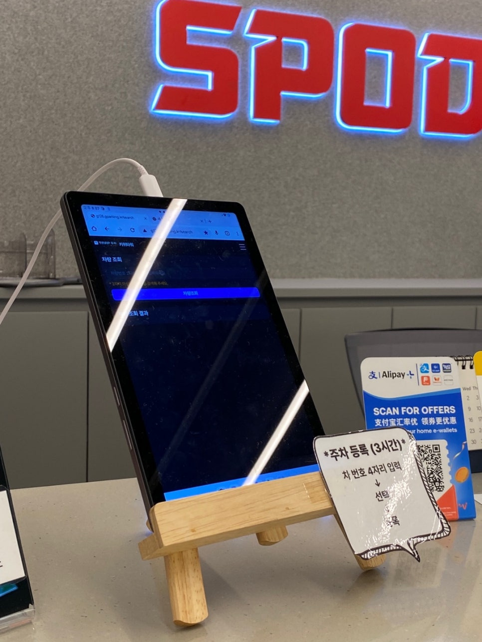 데스크 앞에 비치된 태블릿에서