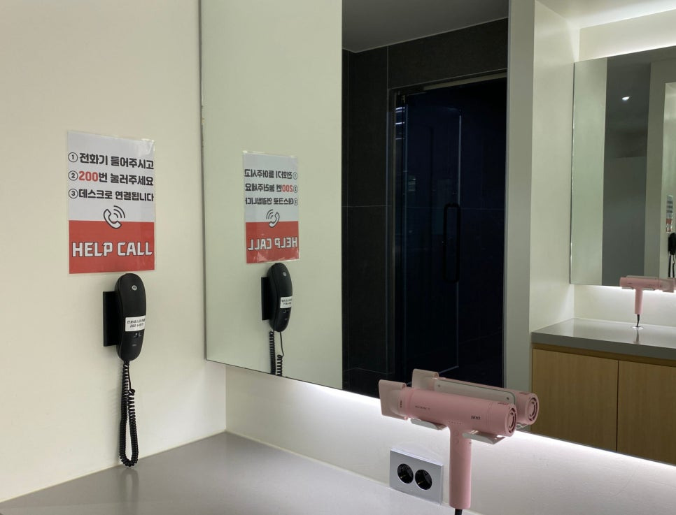 드라이기와 거울이 마련된 공간에서