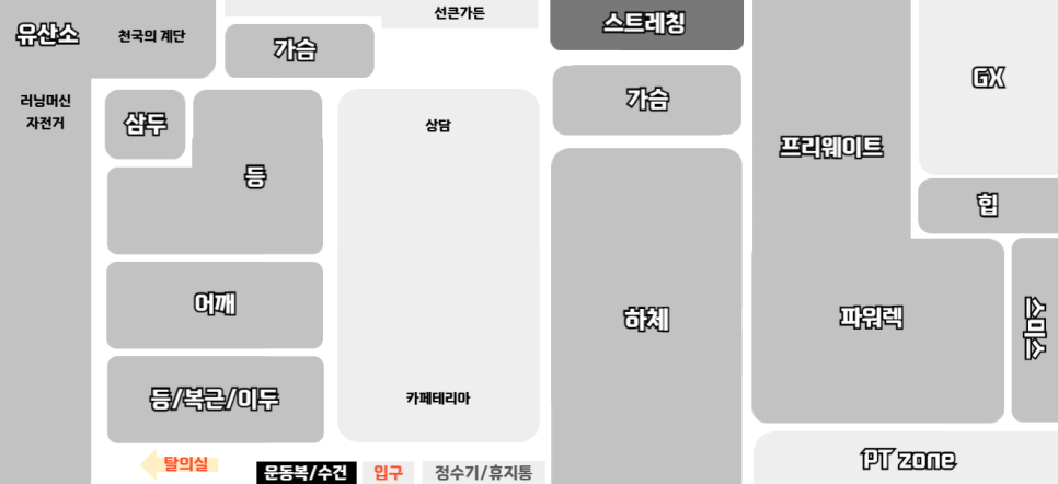 운동 부위에 따라 효율적으로 배치되어있습니다💪