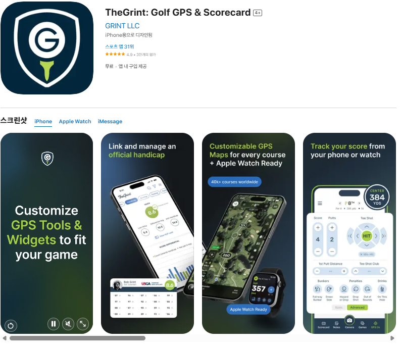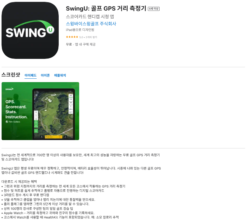 💰 가격 : 무료 / USGA 핸디캡 연동은 유료