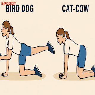 허리 스트레칭: 캣앤카우, 무릎 가슴 당기기