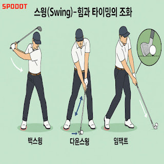 하체 주도 → 상체 팔로움 → 클럽 헤드 가속이라는 순서와 흐름이 핵심입니다.
