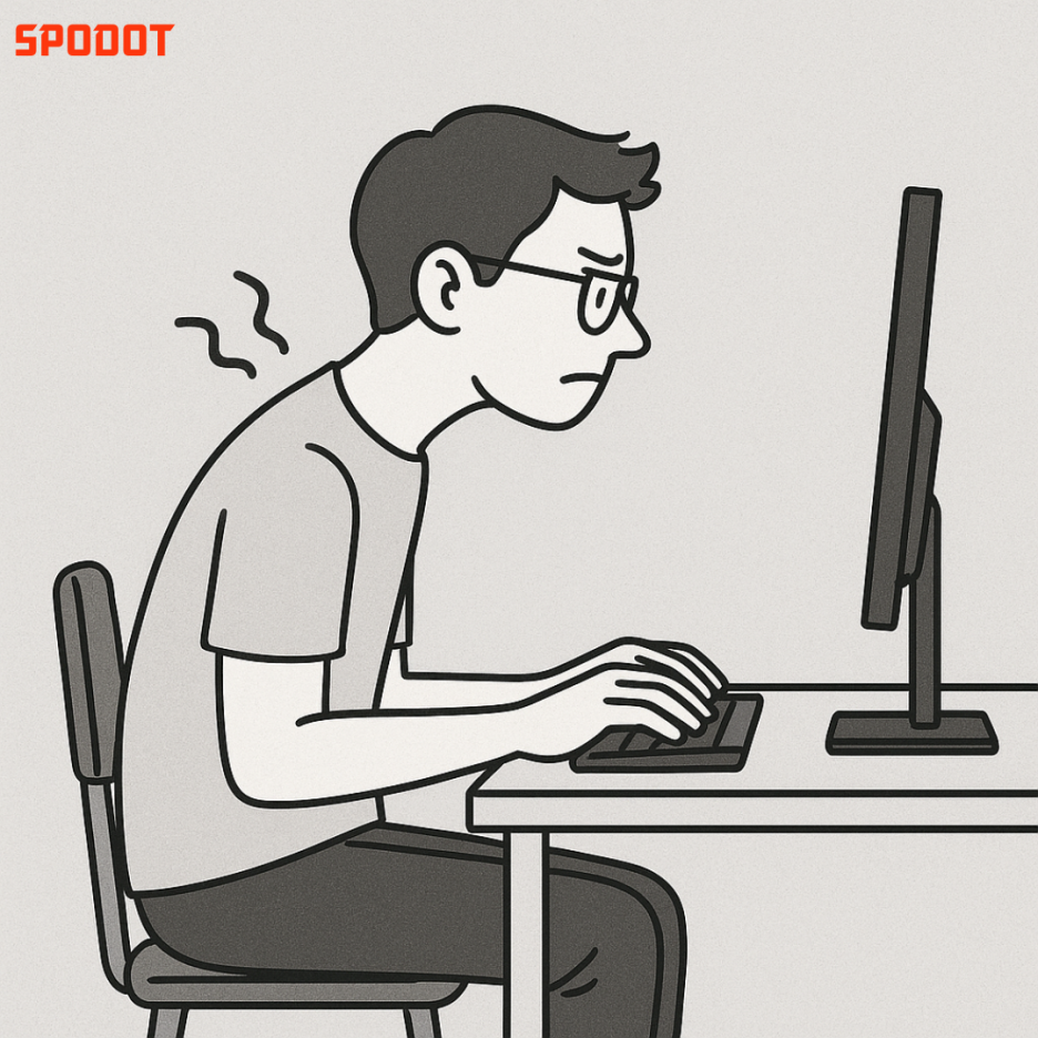 앉아 있는 시간이 길어지면서, 라운드 숄더와