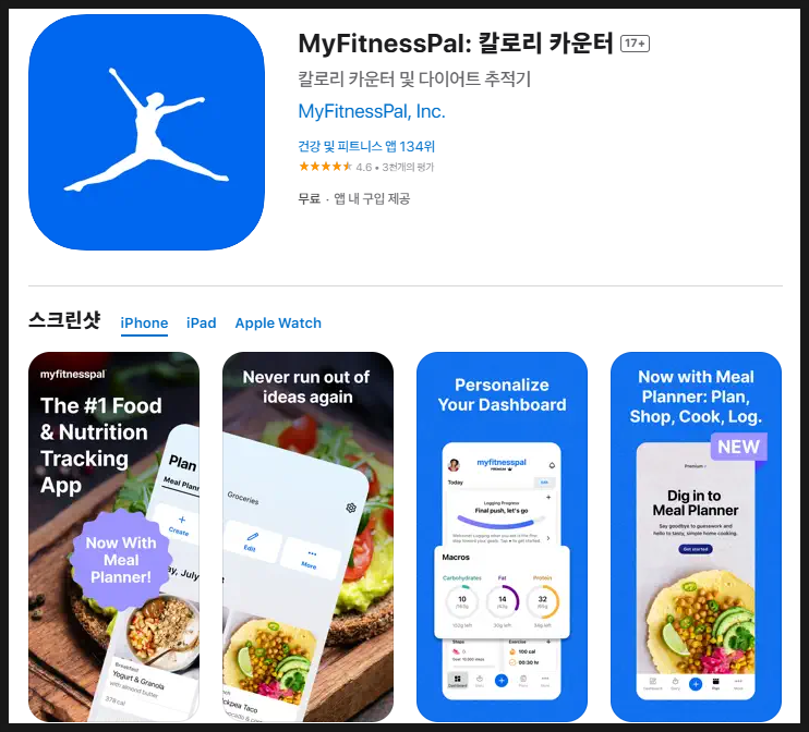 → MyFitnessPal은 전 세계적으로 가장 인기 있는 다이어트 기록 앱이며, 한국 음식도 어느정도 인식됩니다.
