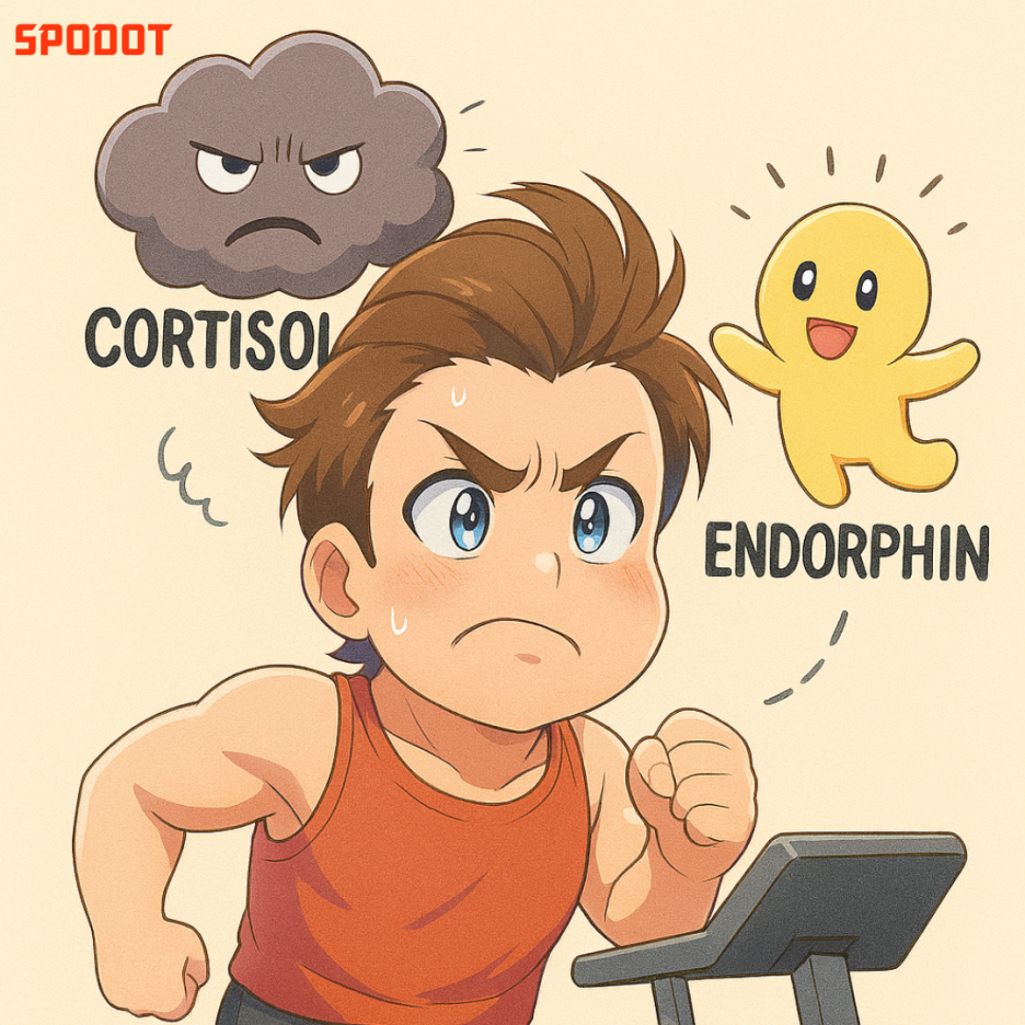 운동은 코르티솔(스트레스 호르몬)을 낮추고,