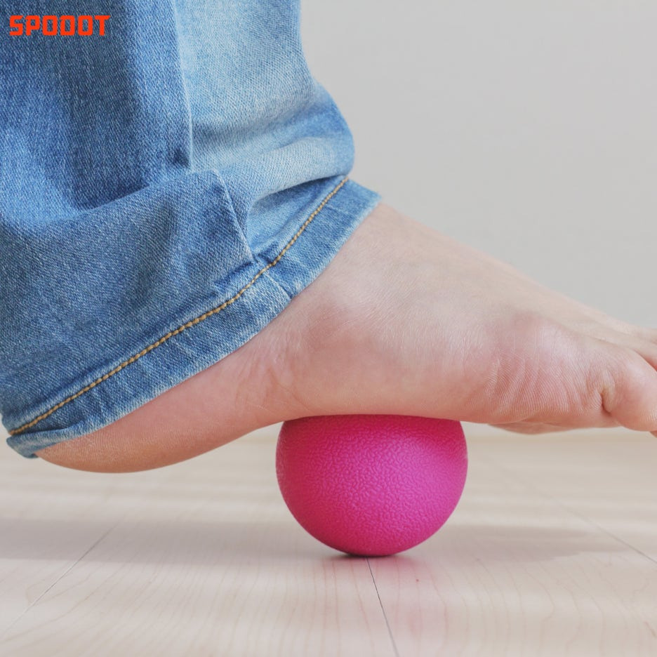 발바닥으로 마사지볼을 굴리면