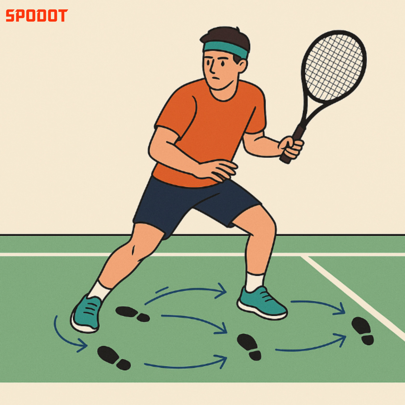 ① 사이드 스텝 → 스플릿 스텝 → 크로스오버 순서 반복