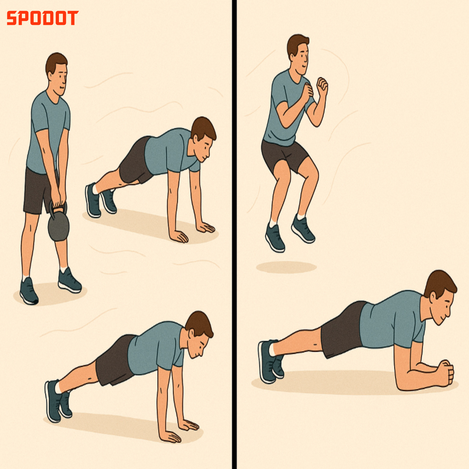 👉 전신 근육 사용 → 심폐지구력 + 근지구력 동시 강화