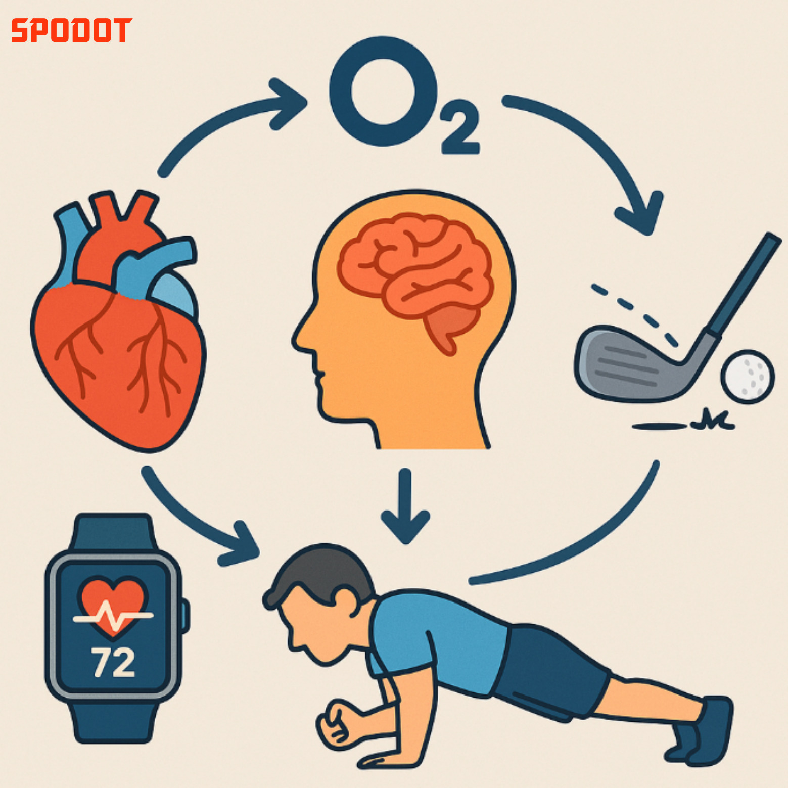 ☞ 심폐지구력이 높으면 산소 운반 능력이 증가 → 뇌 피로 완화 → 후반 홀 집중력 유지 🧠