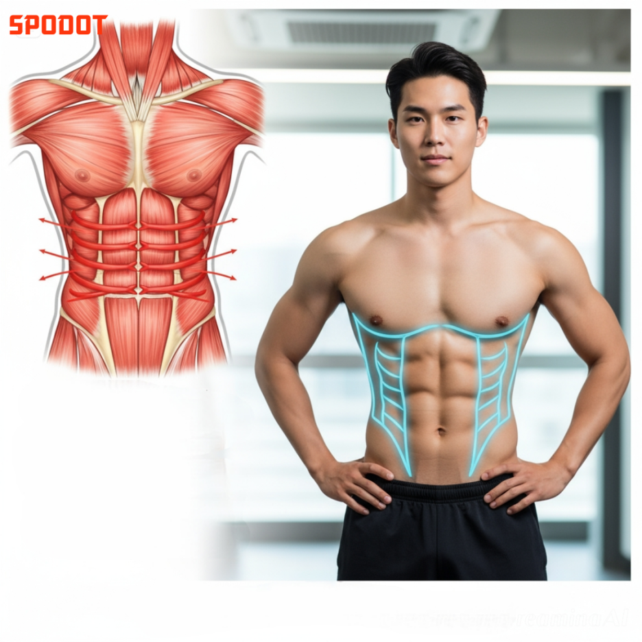 복사근 (Obliques): 옆구리 근육입니다. 이 근육이 적당히 발달하면 허리 라인을 선명하게 만들지만, 과도하게 발달하면 오히려 허리가 두꺼워 보일 수 있습니다.