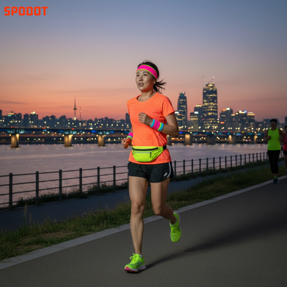네온 컬러는 야간 러닝 시 안전 확보에도 도움이 됩니다.