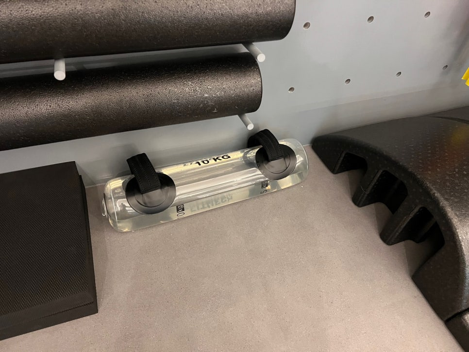 폼롤러, 세라밴드, 케틀벨, 아쿠아백 같은 도구들은