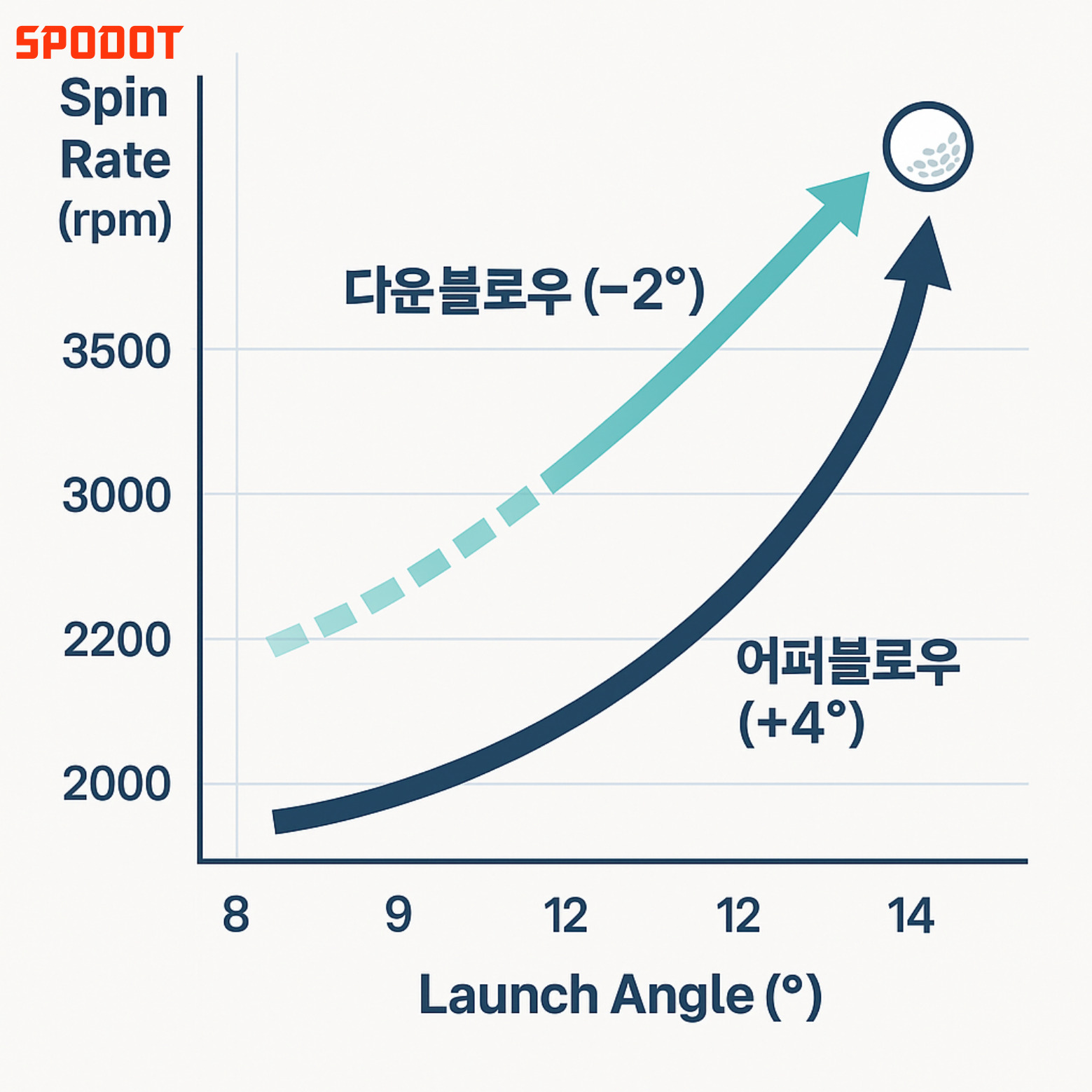 🧠1️⃣ 어퍼블로우의 과학 — 비거리를 결정하는 ‘발사각 + 스핀량’