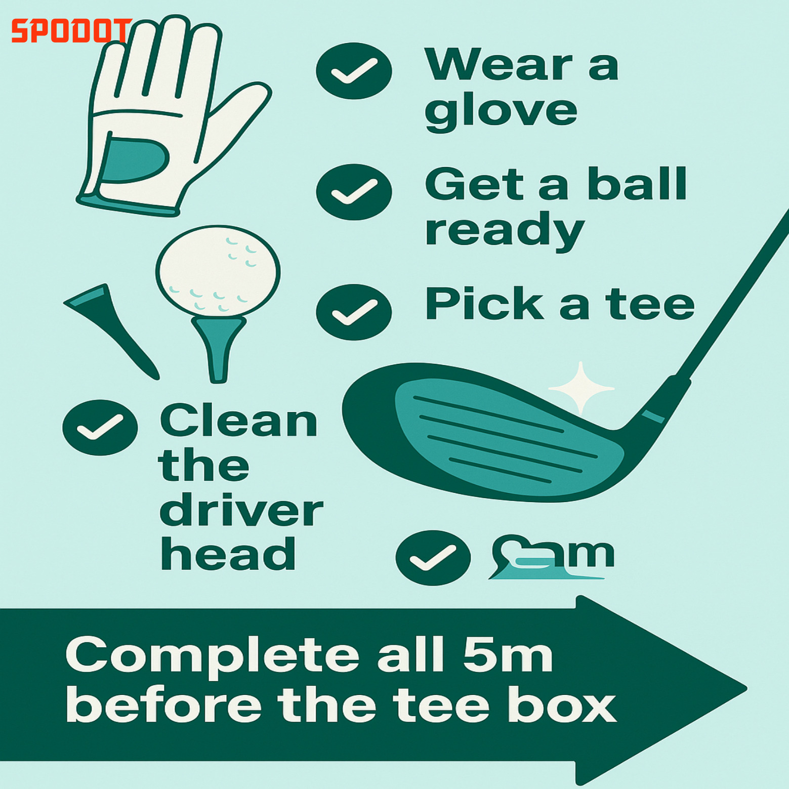 · 티박스 5m 전에서 장갑 착용 + 티 선택 + 공 준비