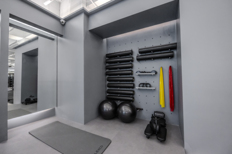 & 운동기구 이외에도 스트레칭(마사지와 폼롤러)도 할 수 있는 스포닷 피트니스
