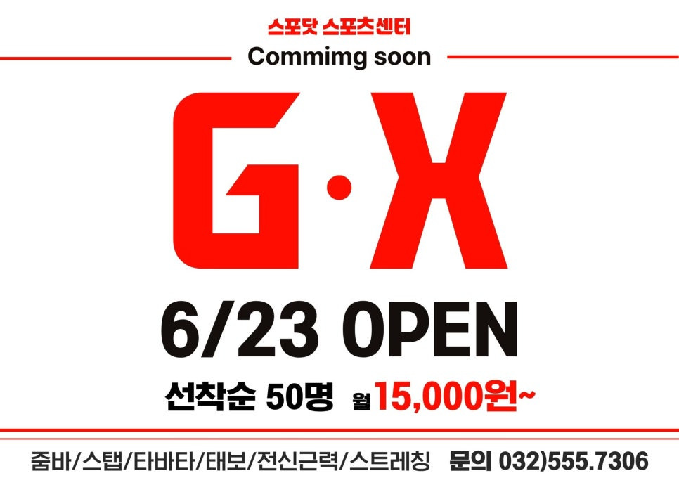 작전역 쥐엑스G.X 수업 스포닷에서는 6월 23일에 정식 오픈을 앞두고 있습니다^^