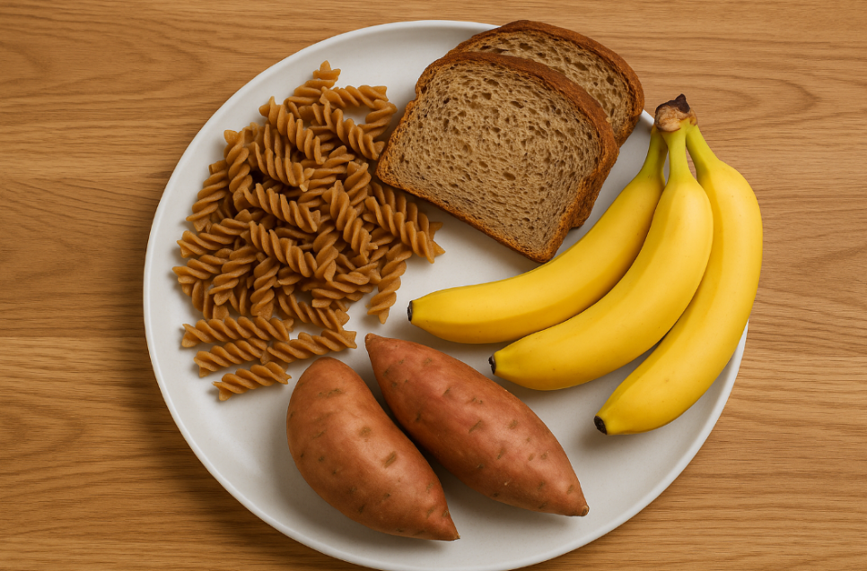 · 경기 전에는 통곡물밥, 파스타, 고구마, 바나나 같은 복합 탄수화물로 에너지를 채워두세요.